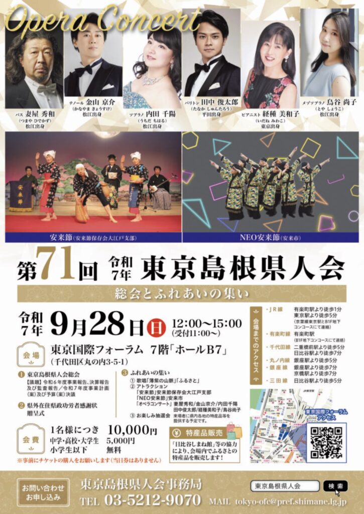 9/8(日)に東京・島根県人会「ふれあいの集い」が開催されます。会場は東京国際フォーラムです。