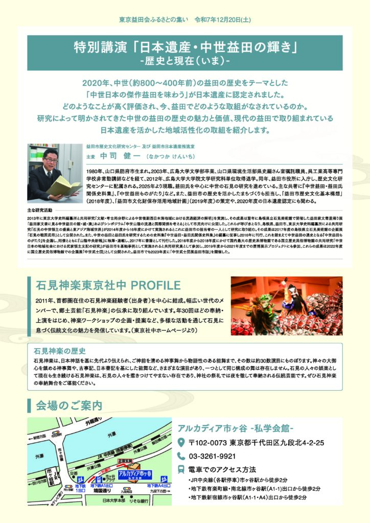 - ・講演会「日本遺産・中世益田の輝き -歴史と現在(いま)-」