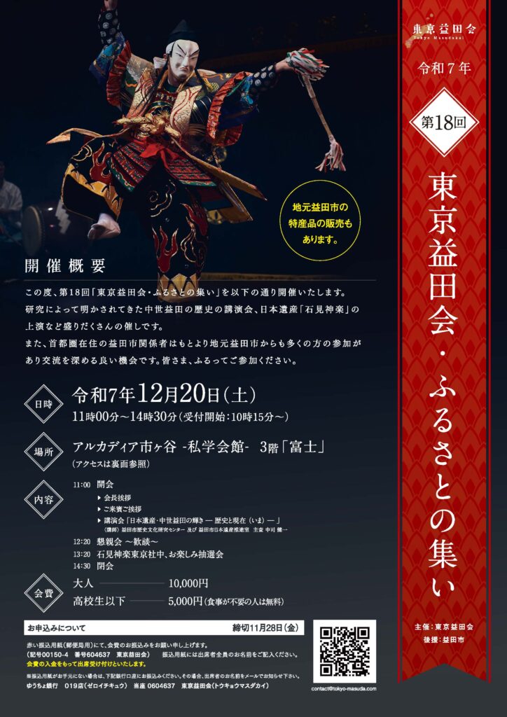 今回、交流イベントとして、「第18回東京益田会・ふるさとの集い」を開催いたします。